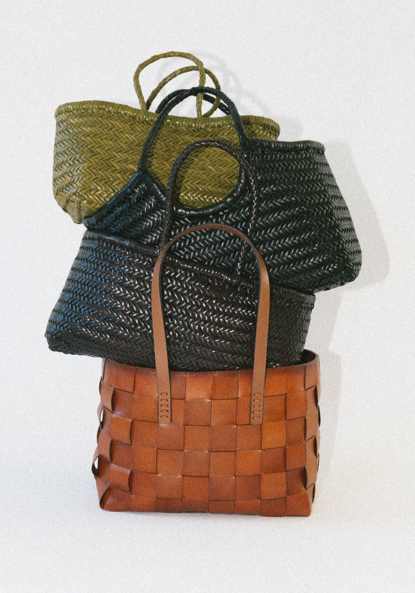 Dragon Diffusion creates handmade woven leather handbags that are handcrafted with respect for tradition, inspired by traditional basket weaving cultures from Japanese bamboo basketry to fibre baskets crafted from natural plants by ethnic South Pacific communities.
