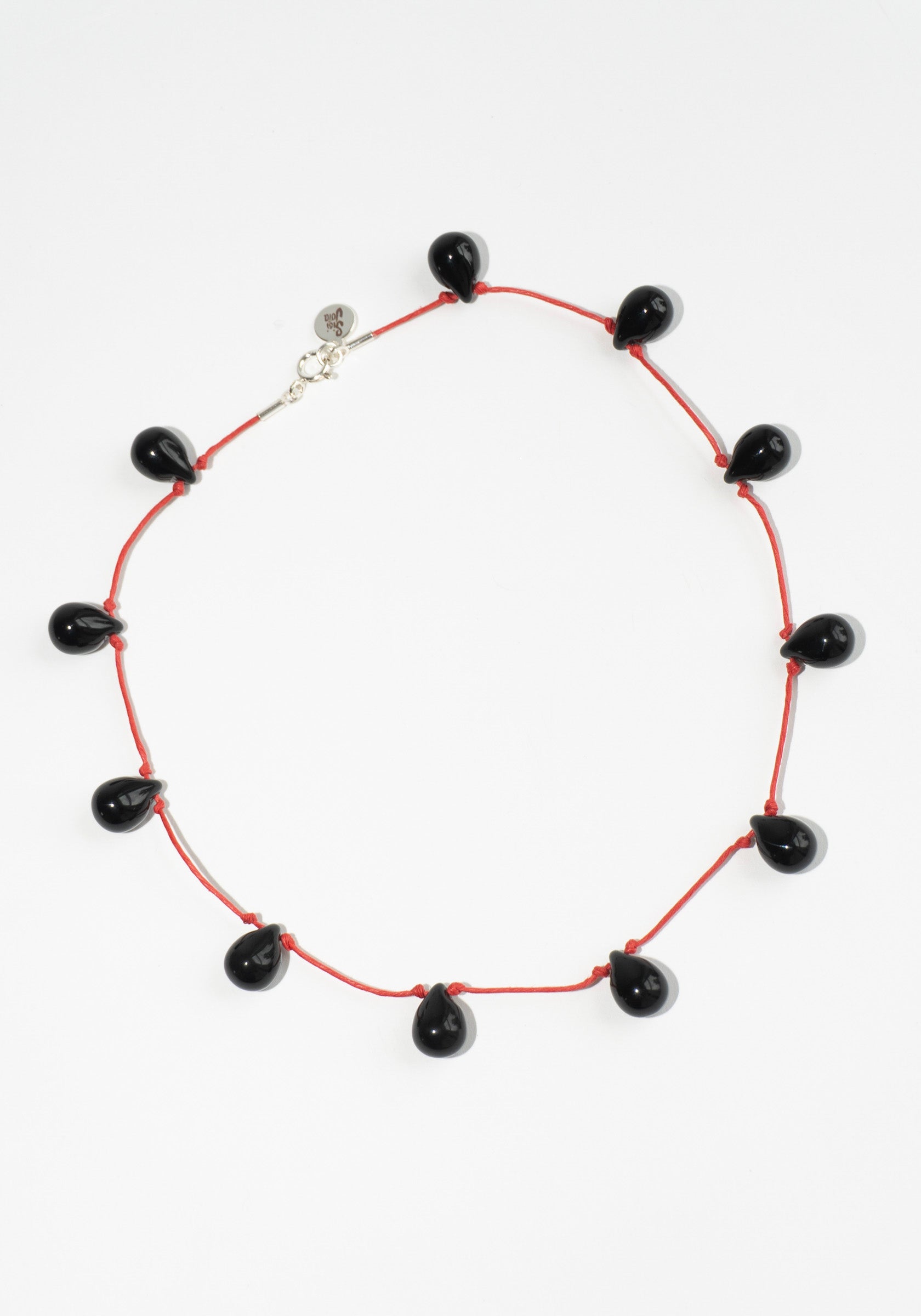Noue Necklace in Black and Red from Sisi Joia. Choker necklace made with glass beads and red waxed cotton thread. Features sterling silver findings and clasp. Handmade in Paris.